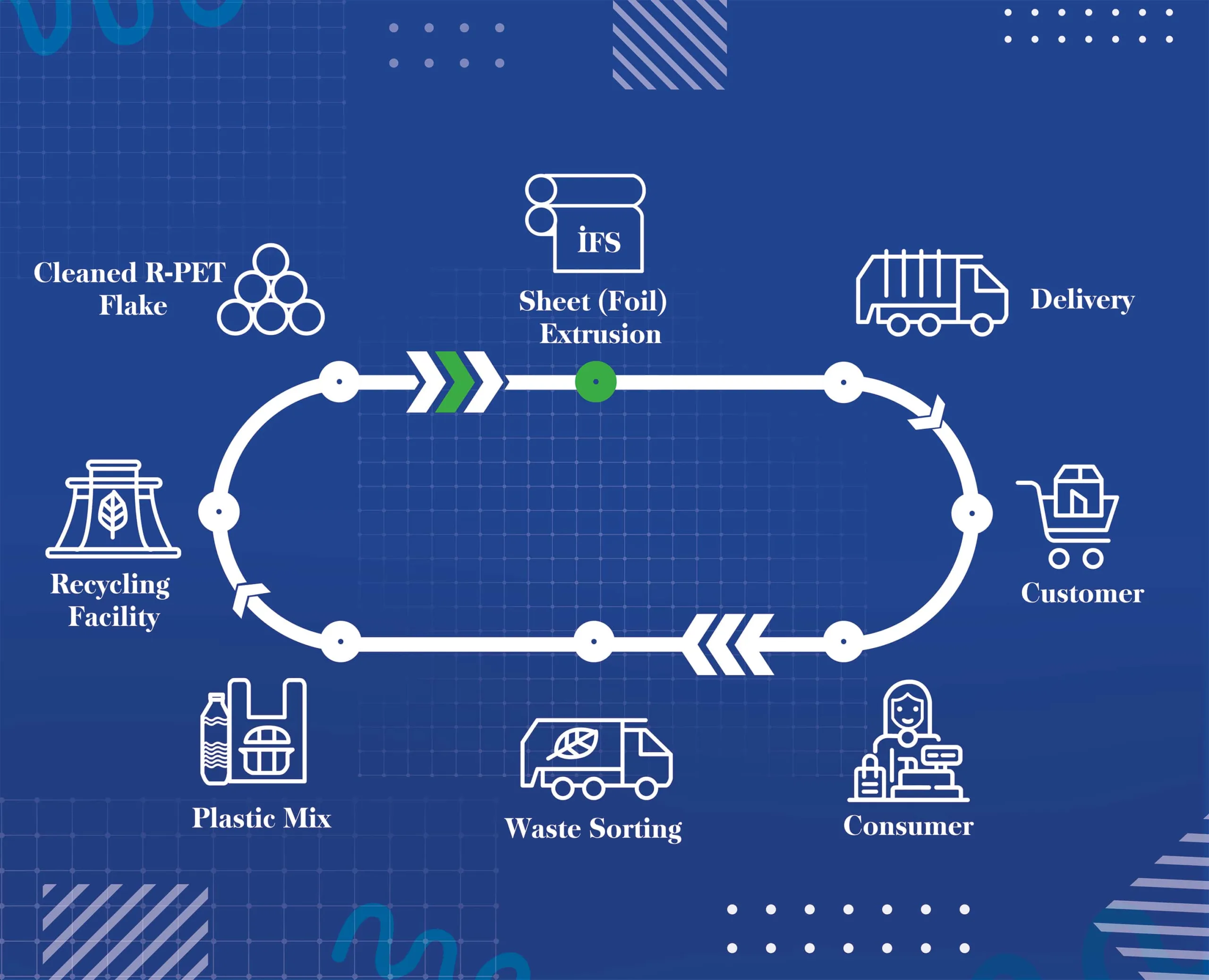 IFS Plastik olarak sürdürülebilirliği üretimin odağına alıyoruz. R-PET (geri dönüştürülmüş PET) levha ve folyo çözümlerimizle döngüsel ekonomiye katkı sağlarken, gıda güvenliği standartlarına uygun, şeffaf ve yüksek kaliteli ürünler sunuyoruz. Kaynak verimliliği, atıkların geri kazanımı ve düşük karbon ayak izi hedeflerimizle çevreye duyarlı üretimi sürekli geliştiriyoruz.